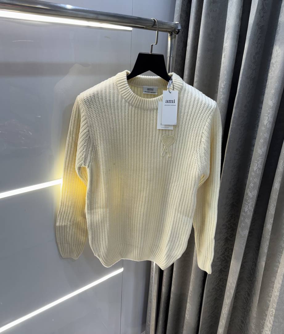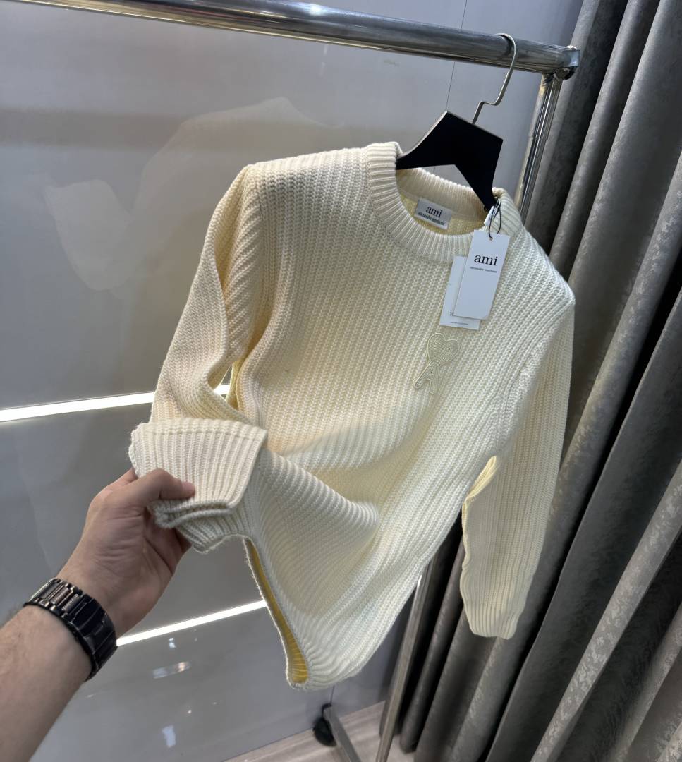 Ami Paris Cream Knitted Ultimate Imported Pull Over