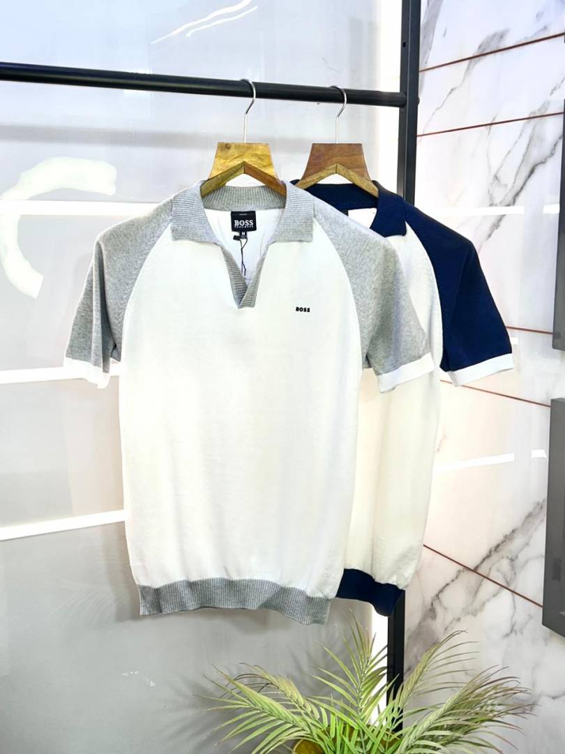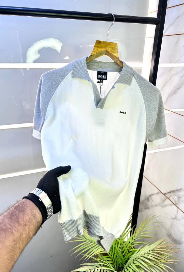 Boss Knitted Polo White Super Premium Collar Neck T-shirt F3132-W1